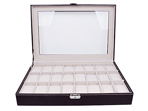 Best Seller! D2B 24 Watch Display Case Faux Leather Storage Jewellery Box Bracelet Glass Top Review