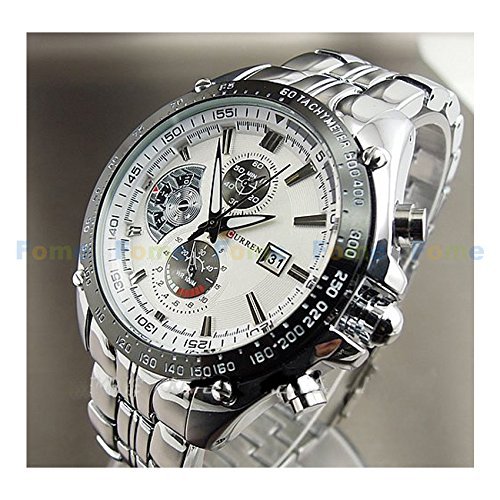 FOME offer FOME CURREN Men quartz strip three eyes watch - White silver belt. This awesome product currently limited units, you can buy it now for £11.55, You save -