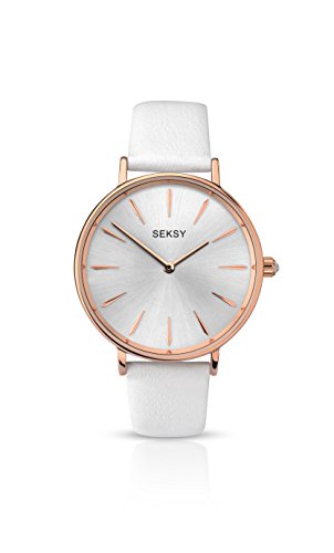 This ladies Seksy Edit watch has a PVD rose plating case and is fitted with a quartz movement. It is fitted with a white leather strap and has a silver dial.